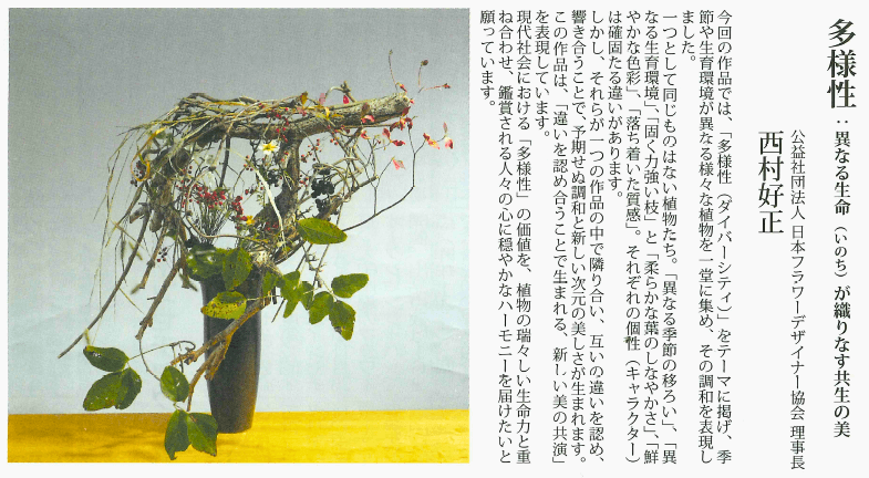 「第16回NFD全国フラワーデザインコンテスト」の金賞・文部科学大臣賞の受賞作、宮田紗紀さん「花によせる想い」が掲載されました。