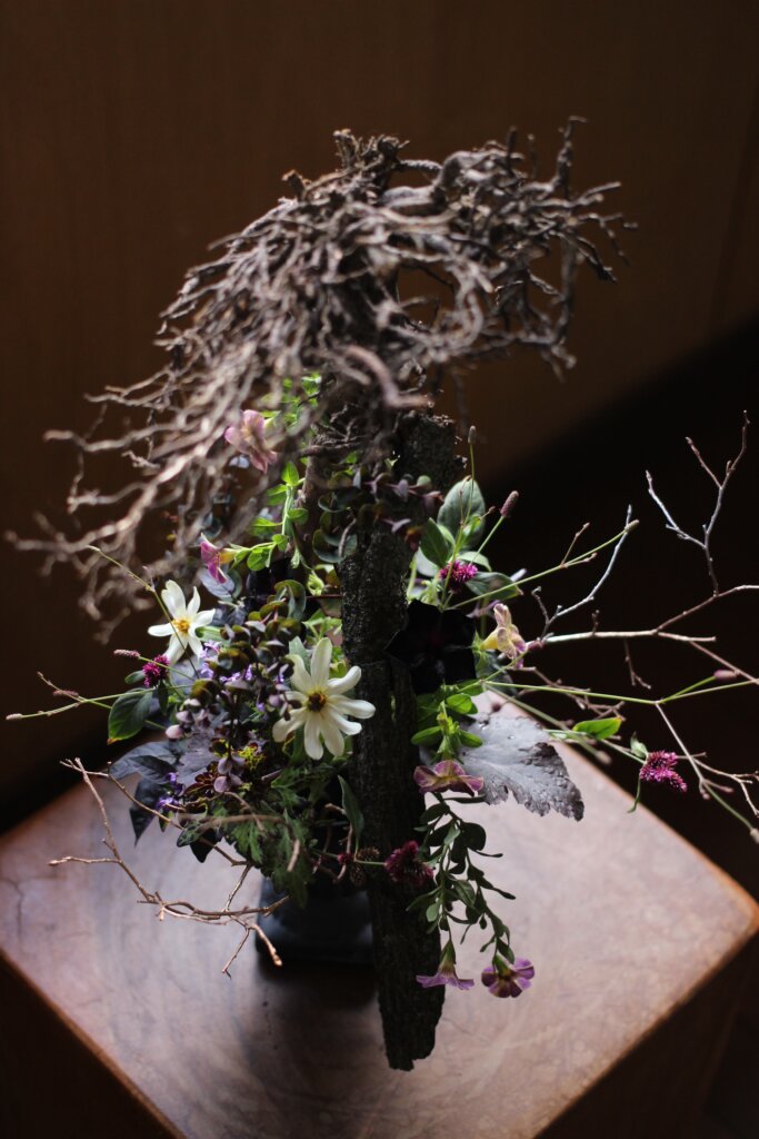 2021年秋冬カラーの「黒」を意識した花材を集めて、花をいけます。