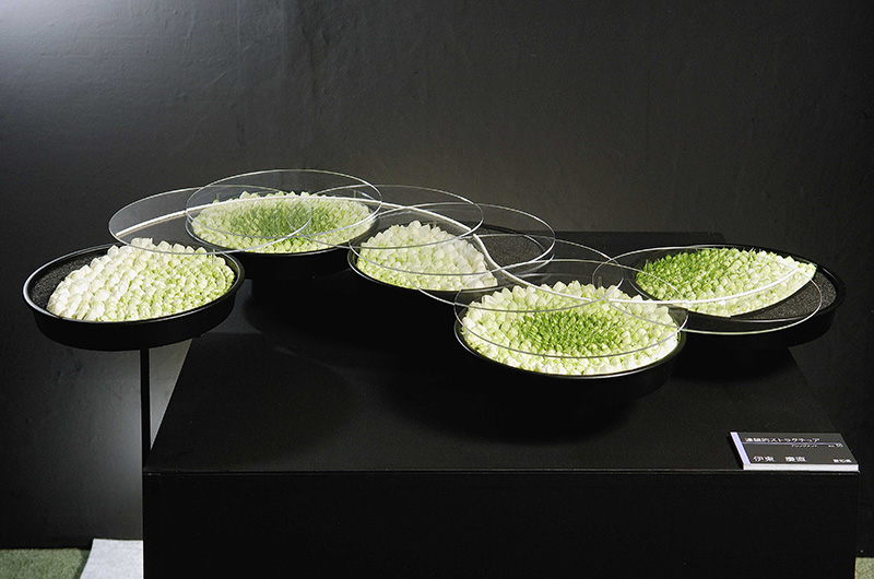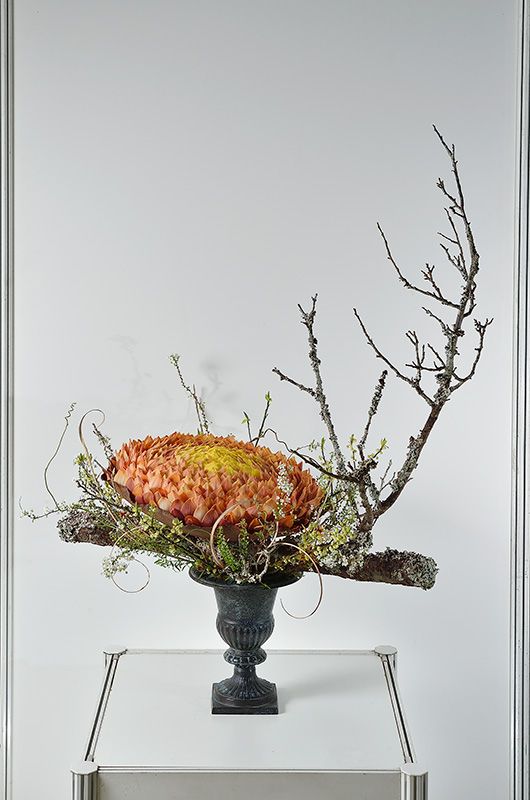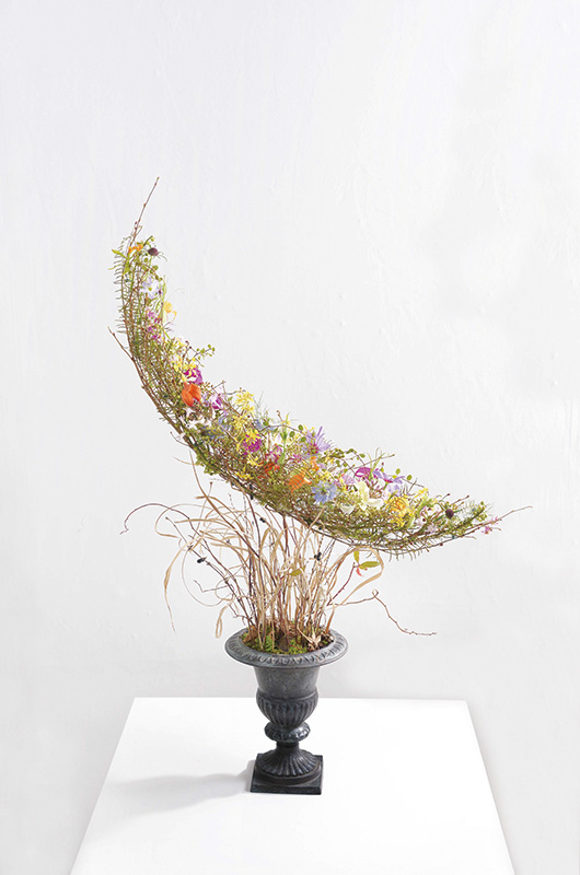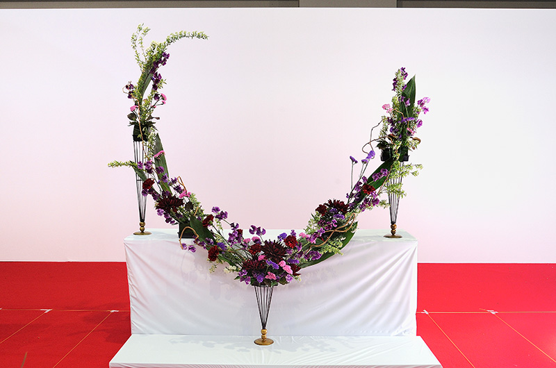 これはデモンストレーションでよく話すのですが、フラワーデザインにはデザインというワードが入っているのだから、アートとの線引きを考えなくてはいけないのでは、と。グッドデザイン賞なども、昔は新しいもの、見たことがないものが受賞していましたが、現在では社会のために役立つデザインが評価されるように変わってきています。日本にフラワーデザインが入ってきて、もう半世紀以上。個人的には、造形的な部分に関しては出尽くした感があり、すでに成熟したといってもいいでしょう。