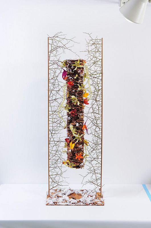 同時に、フラワーデザイン以外のデザインにも目を向けた方がいいと考え、建築であったり現代アートであったり、他分野を積極的に見始めたのもこの頃です。直接的に作品に影響することはないですが、見たものが蓄積されるので、デザインを考える際に降りてくるものがあるんです。折々に感じたものが、自分の引き出しを増やしてくれるように思います。