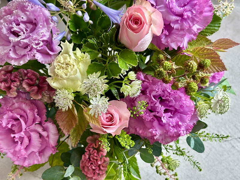予約時には予算はもちろん、用途や贈る方の性別、年代、さらに好きなイメージなどをヒアリングして、その後はおまかせになります。花の色や種類などの要望をいただきますが、その時市場に行って、本当におすすめしたい花、季節を感じる花などをセレクトしたいので、このスタンスを変えるつもりはありません。