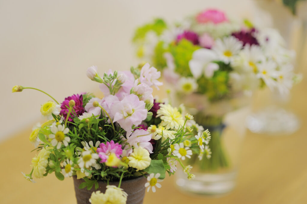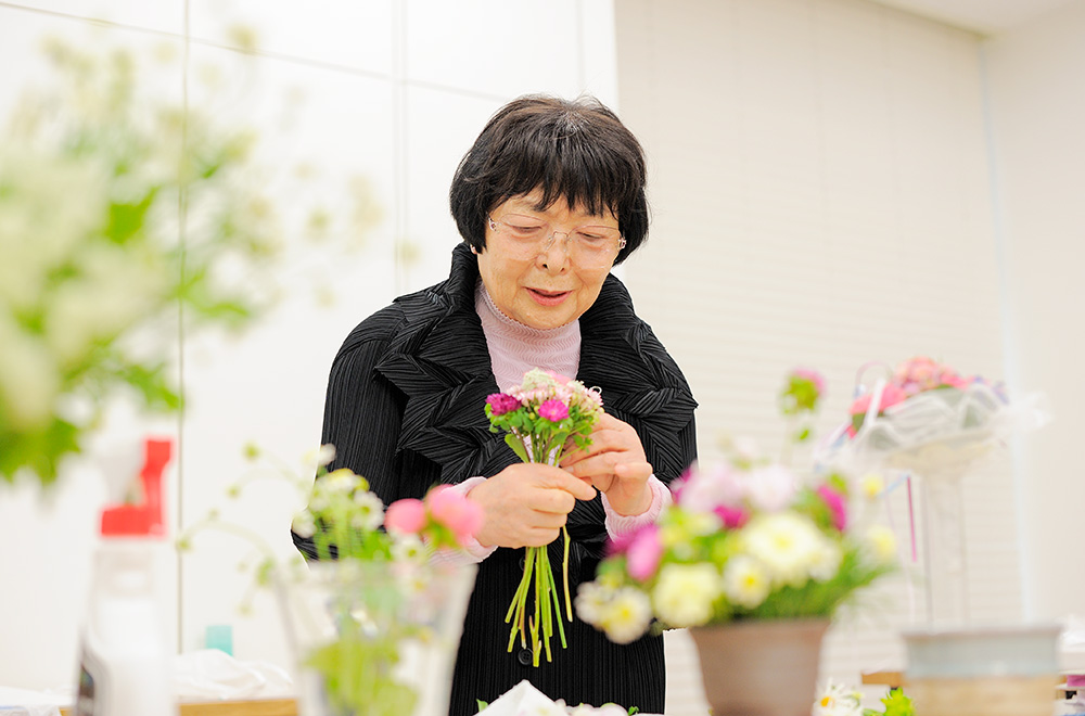 花の好きな人はいっぱいいらっしゃるので、1か月でもお稽古してくださったら、家での飾り方が変わると思います。資格を取らなくても、ちょっとハサミの使い方を習っただけで、生涯お花を 生かす切り方ができるようになるんです。だから花を習う方が、いつまでも続くようにありたいと思います。庭に咲いている花でも、飾る気持ちがあればいいんです。その想いこそが、大切なのですから。
