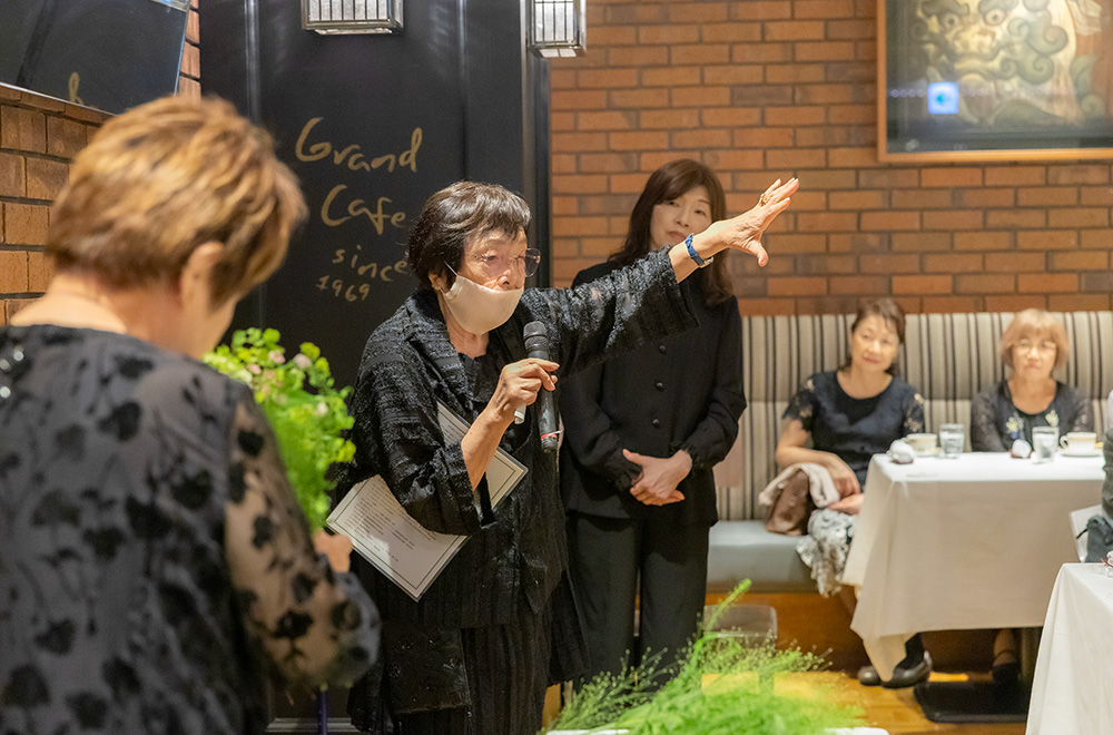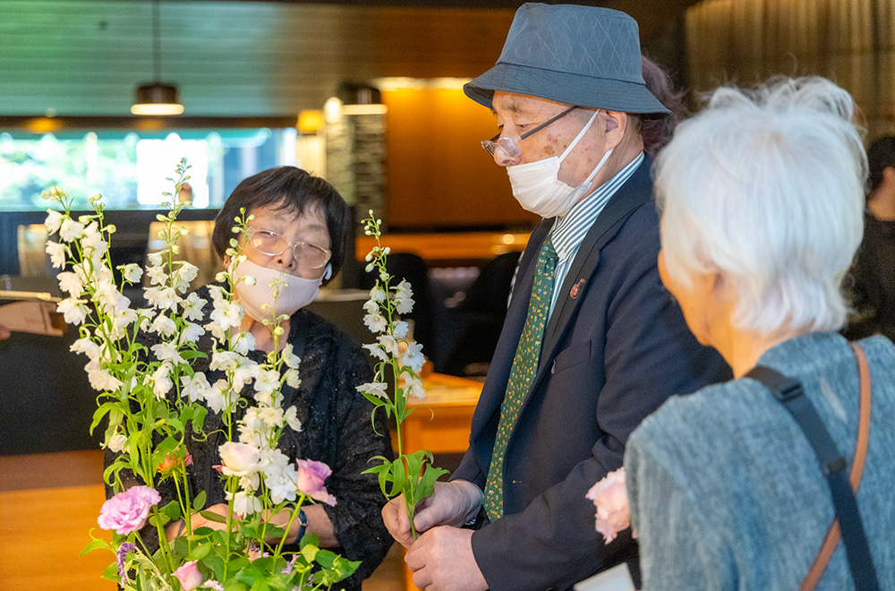フラワーデザイン界のレジェンド、副島三煌NFD特別名誉本部講師にインタビューしたのは、『福岡フラワーデザインSchool』設立60周年のパーティーの日。世利靖子NFD特別名誉本部講師や甥の副島正英NFD名誉本部講師をはじめ、錚々たる来賓の皆様に囲まれて穏やかに微笑んでおられました。お話しを始めると、歴史の証言とも言える様々なエピソードとともに、時に苦言を交えながらこれからのフラワーデザイン界への期待を語られて、時間の経つのを忘れるほど真摯に向き合っていただきました。まだまだ現役のフラワーデザイナーで在り続けている副島三煌先生。70周年のパーティーでもぜひお邪魔したいと思います。
