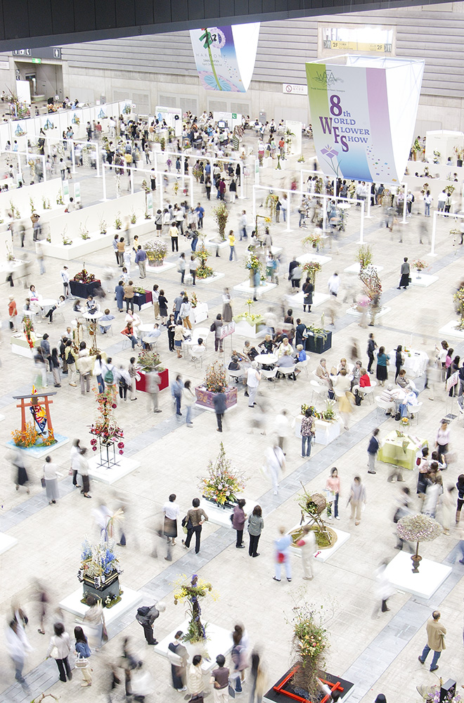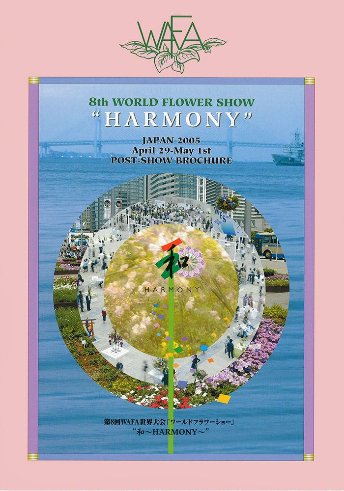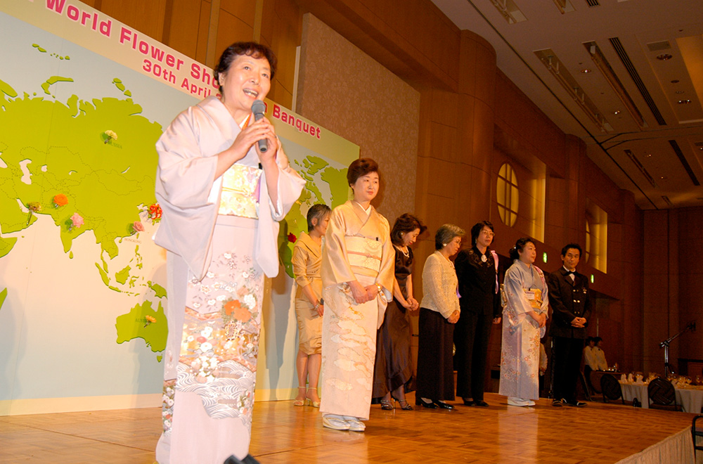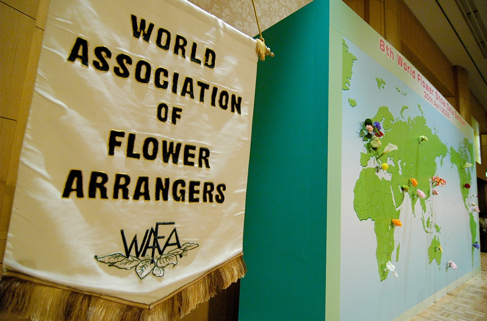 昭和56年には、当時副理事長だった池田孝二さんらとともに、40人くらいの団体でヨーロッパへ勉強の旅へ。スウェーデンの後にイギリスの王立園芸学校に行った時のことでしたが、NAFAS(1959年設立)というフラワーデザインの全英組織である協会の方たちから、フラワーデザインのインターナショナルをつくりたいというお話を聞きました。それで各国から一つの団体しか入れませんが、日本フラワーデザイナー協会が加盟しませんか、とお誘いを受けたんです。そうして1981年に設立されたのが、WAFA(World Association of Floral Artists : 世界フローラルアーティスト協会)です。日本代表として、第1回イギリス世界大会から毎回参加しています。第6回南アフリカ、第7回スコットランドでは、審査員を務めました。3年に1回で設立前からですので、もう40年以上関わっていたことになりますね。 平成17年の第8回WAFA世界大会は、私が審査運営委員長を務め「和~ハーモニー~」をテーマに日本で開催しました。会場のパシフィコ横浜は大盛況で、この国際交流の経験は日本フラワーデザイナー協会にとって、そして私にとっても、素晴らしい財産になってくれたと思います。