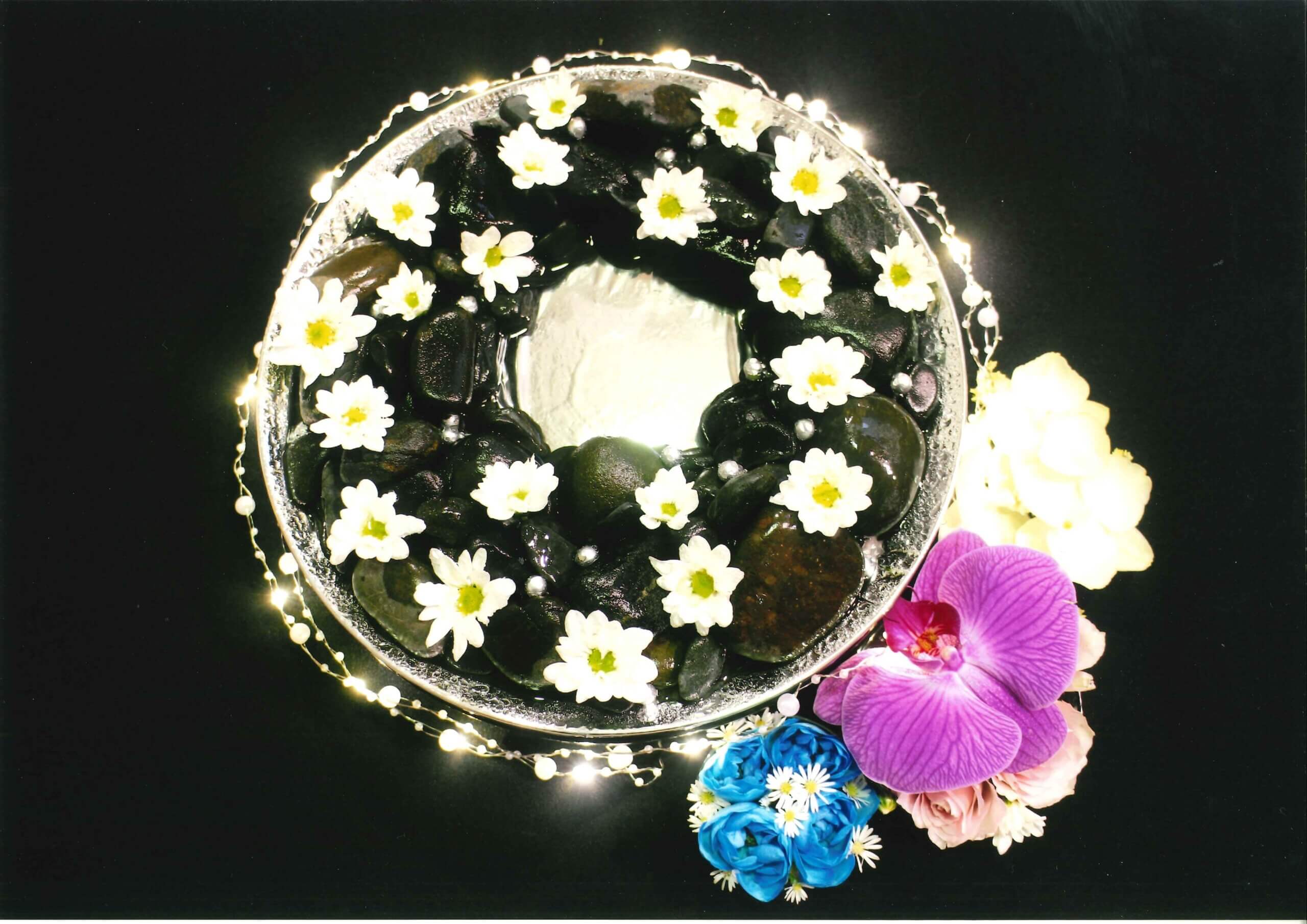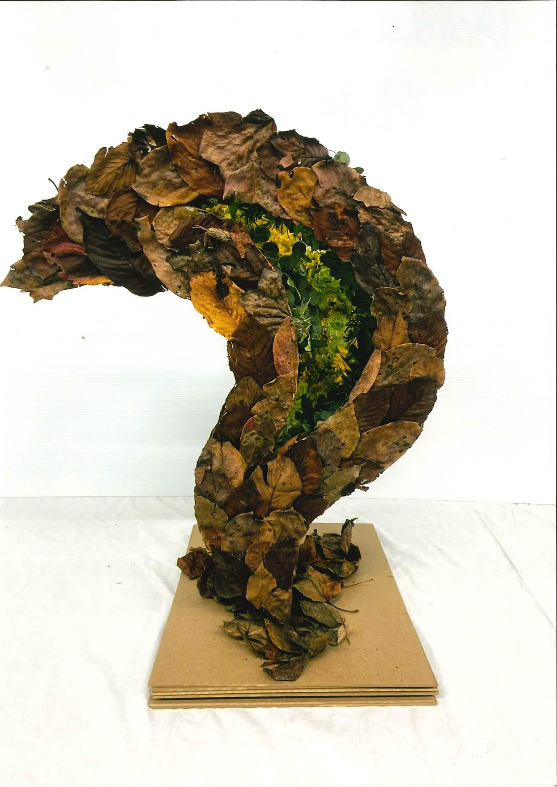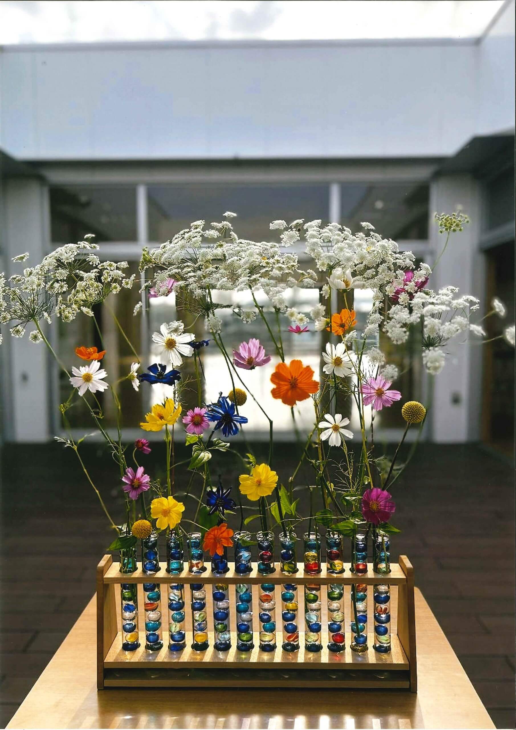 「 Bloomination ~光り輝く、すべての人に開かれた花の世界~」をテーマに主に植物素材で構成され、花器または土台に構成されたアレンジメント作品。