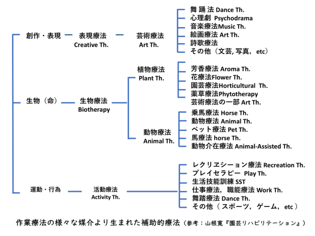 病気や大けがによって感覚運動機能の障害となられた患者さんの中には、元の通りにはならない感覚運動機能の障害を受け入れたのちも、日常の生活動作の不便さを克服していくことなります。現実には、元に戻る可能性と元に戻らない可能性が混在しており、感覚運動機能の障害がありながら生活することを余儀なくされた患者さんも多くおられます。そのような際、「植物を育て無邪気で澄んだ気持ちで純粋に楽しむ」という行為は、障害を受けた部分以外も含めて身体の基本的な機能の低下を防ぐことでしょう。さらに、植物は人間がプランターや鉢物や苗床などに人為的に育てている場合は、植物の育ちにあわせた作業が必要となります。その植物から必要とされて行う「育てる行為」は、動物を育てるほどリスクがあるわけでもなく束縛されることは少ないのです。植物の世話とされる「育てる行為」は、適度な自由がある一方で、定期的で工夫を凝らした世話が求められます。「育てる行為」を伴う園芸活動は、時に移動したり、移動先で立ったり、座ったり、手を使うために体のバランスを保ったりするため、身体障害の療法としての役割を無理なく担うこともできるでしょう。