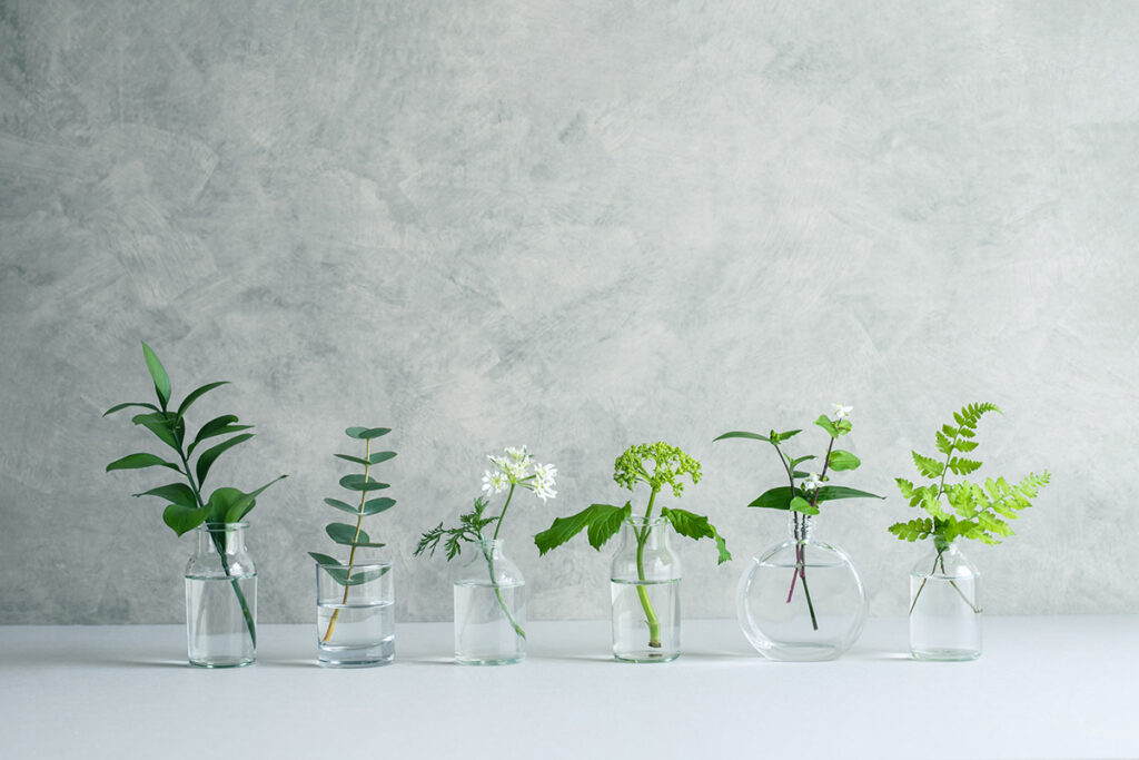 水をこまめに替えるのは、微生物の繁殖を避けるためです。花が生けてある花器の水が不足すれば、花器に水を追加すればいいように思われますが、それは“さし水”といい、良くありません。微生物が、そのまま残ってしまうからです。また、水替えでは、花器だけでなく、切り花の茎も清潔にするのが望まれます。そのため、茎についたぬめりを洗い流すことは役立つでしょう。