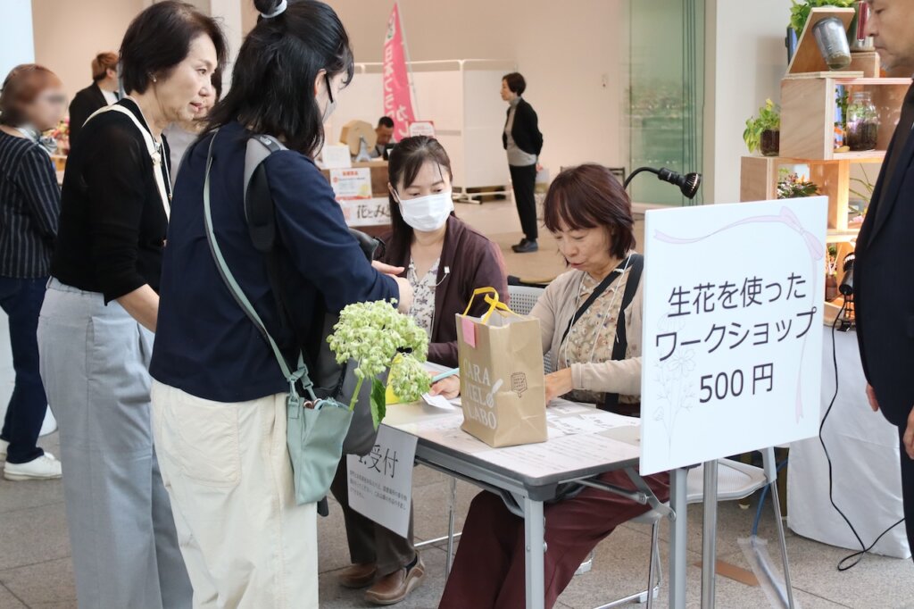 ■来場者を対象に、フラワーデザインの楽しさを伝えるワークショップを行う