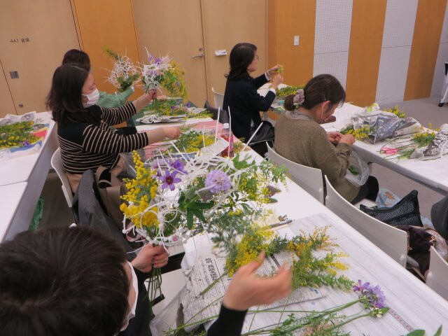 内容:季節の植物で春を感じるナチュラルな花束を制作しま