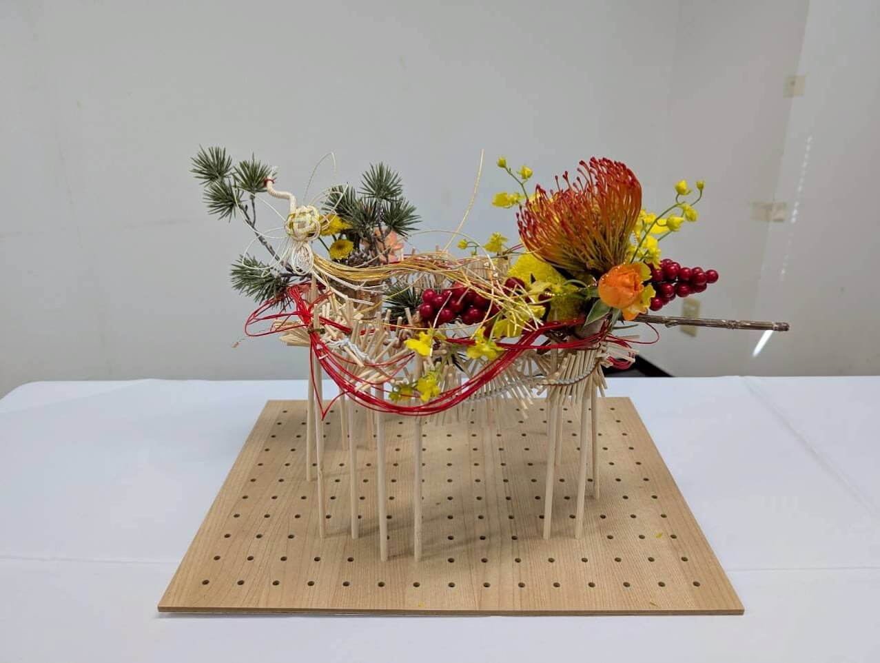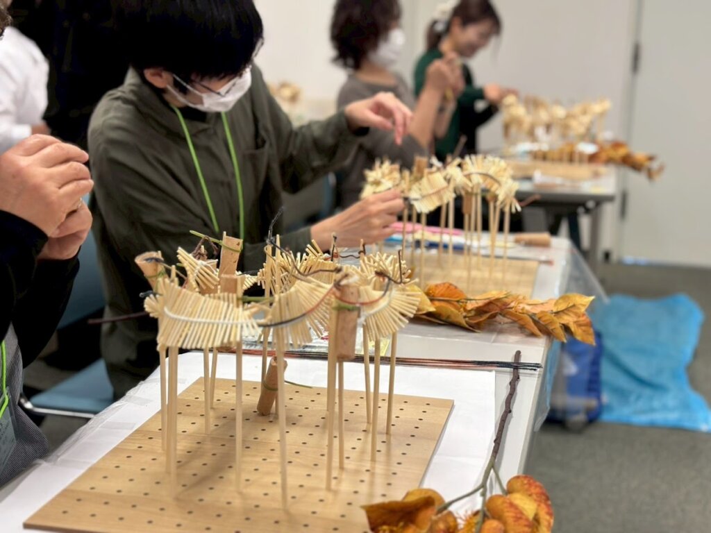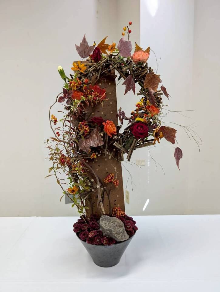 今年の花ファッションテーマ「新しい可能性」にあわせ、普段目にしているものの見方を少し変えての土台作りと、トレンドカラーのオレンジ色の花材を中心に、秋のアレンジメントを作ります。