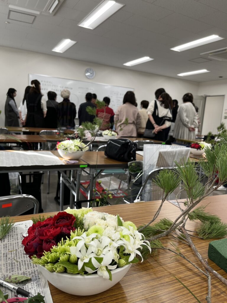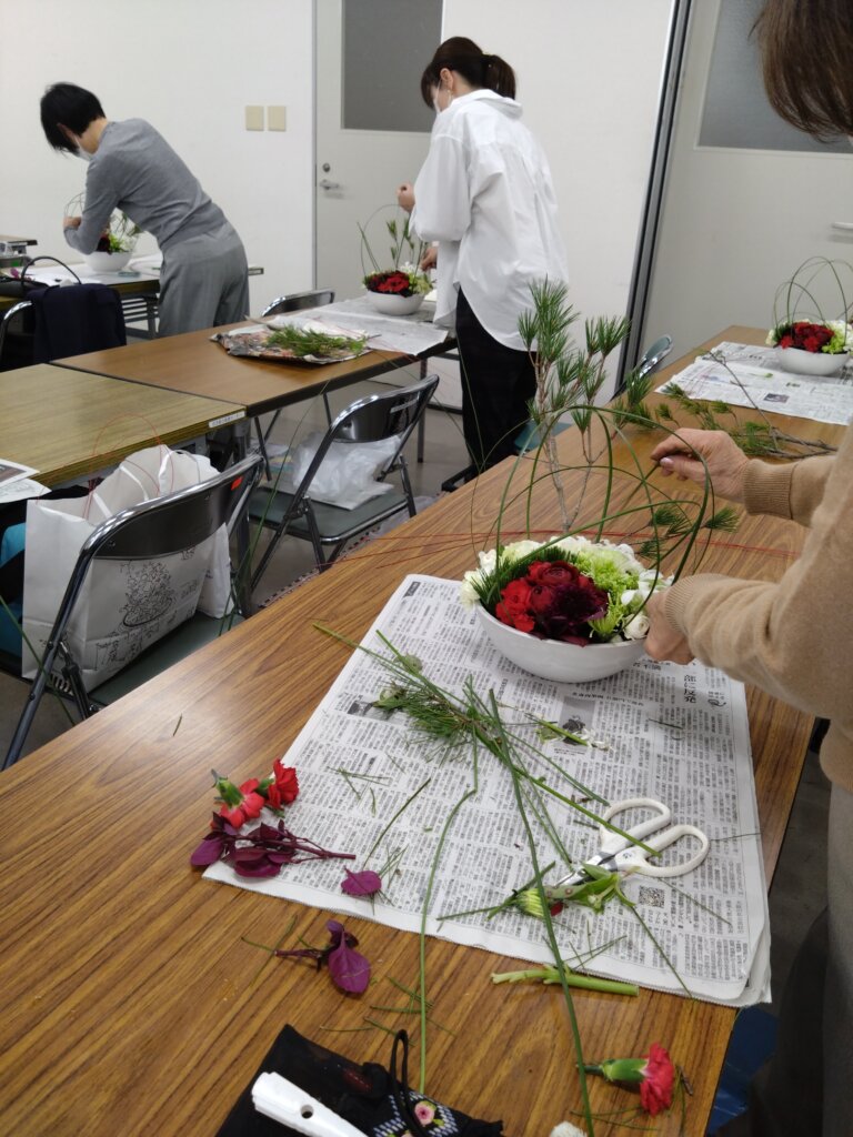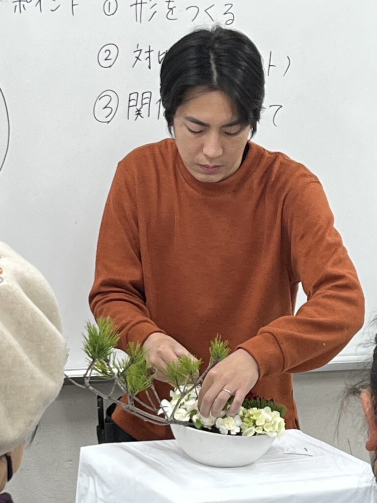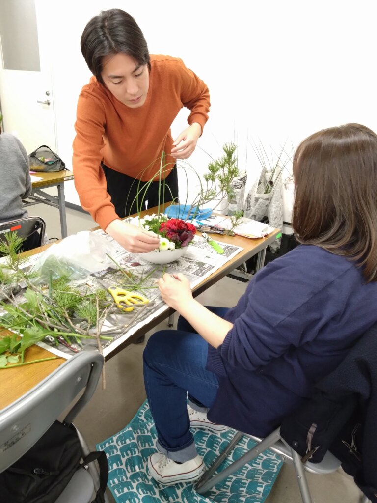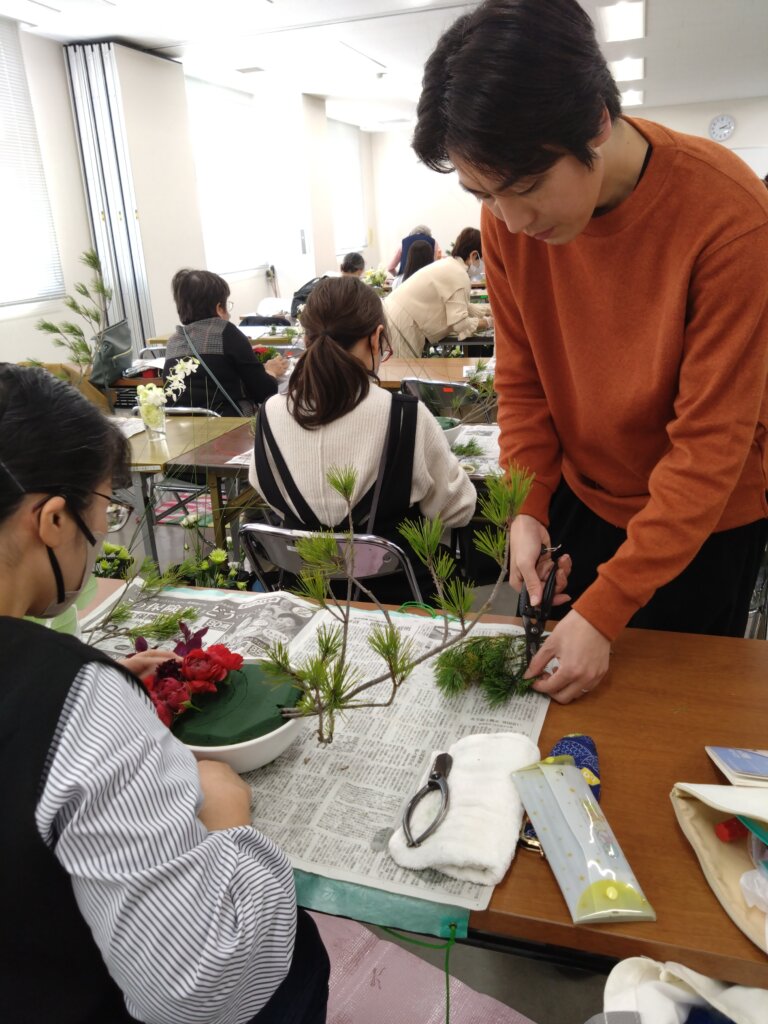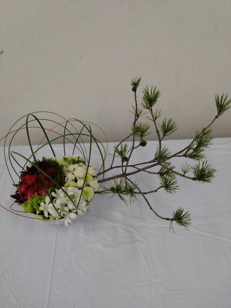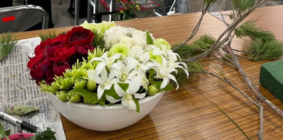 植物と素材の構築技巧を学び、モダンなお正月のアレンジメントを制作します。
