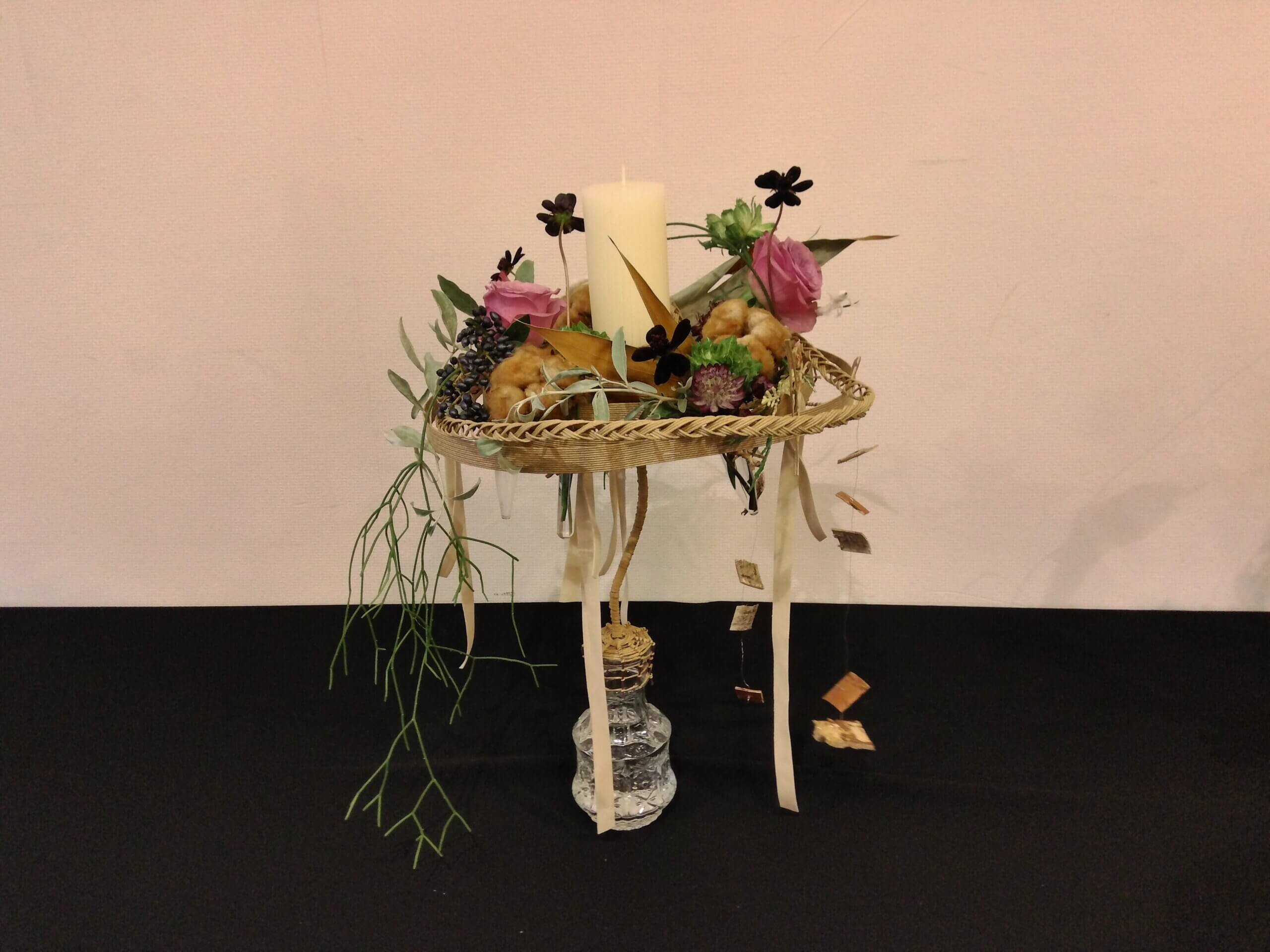 クリスマスに寄せすぎない、素材を生かしたアレンジメントを制作します。
